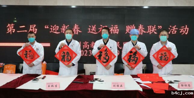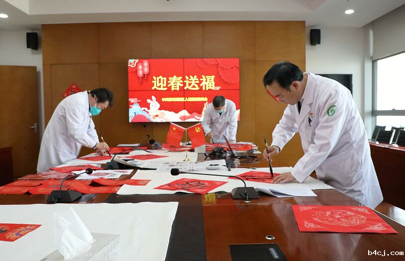 为弘扬中华民族传统文化,营造浓厚的新春佳节氛围,丰富医院文化建设内涵,在兔年春节即将来临之际,1月19日上午,我院党委举办第二届“迎新春、送祝福、赠春联”活动,邀请医院书法爱好者现场书写春联和“福”字,赠送给广大市民及员工。