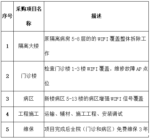 采购项目名称:全院内网WIFI信号增强覆盖